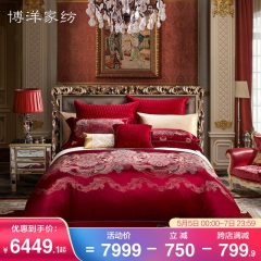 博洋家纺真丝大提花六件套婚庆大红床上用品床品被套床单结婚欧式