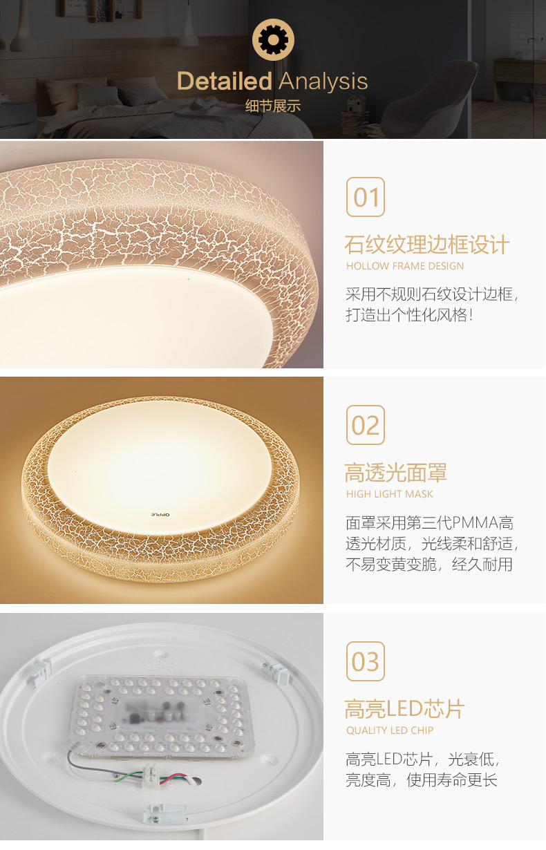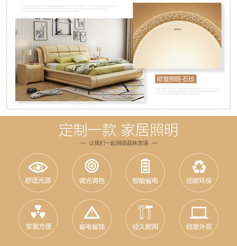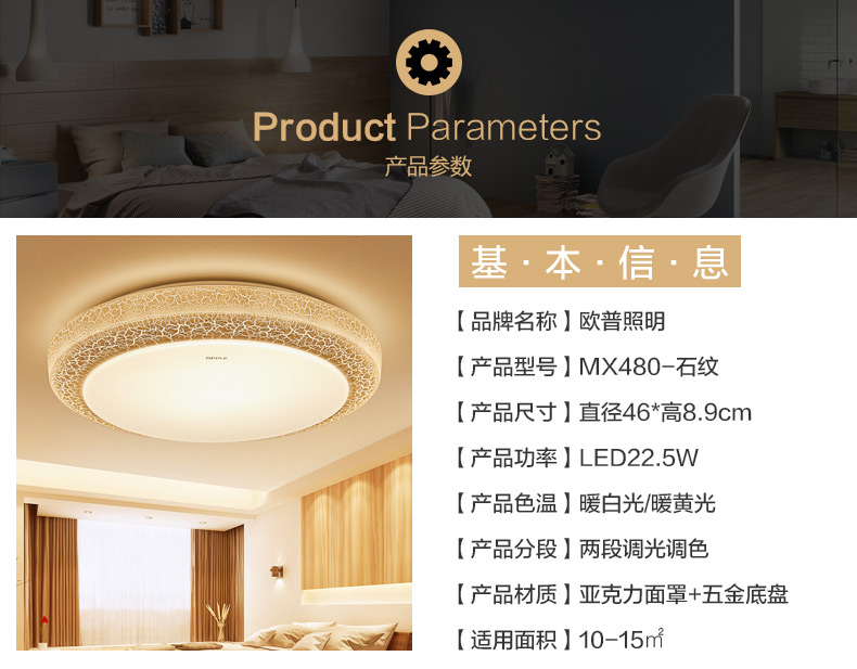 商品名称:欧普照明LED吸顶灯简约现代卧室灯客厅灯房间灯具石纹官方旗舰店