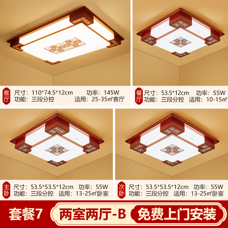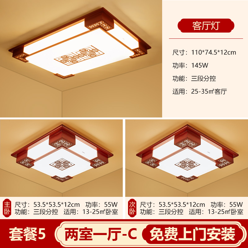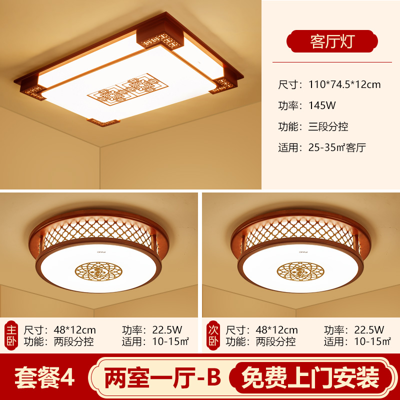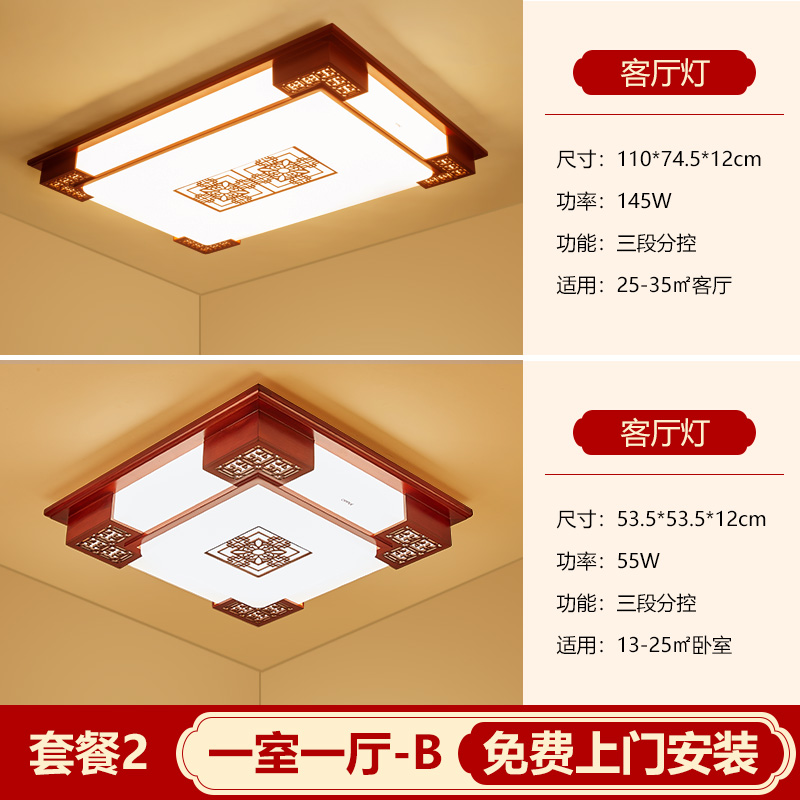 欧普照明led客厅灯长方形吸顶灯新中式实木中国风官方旗舰店红韵