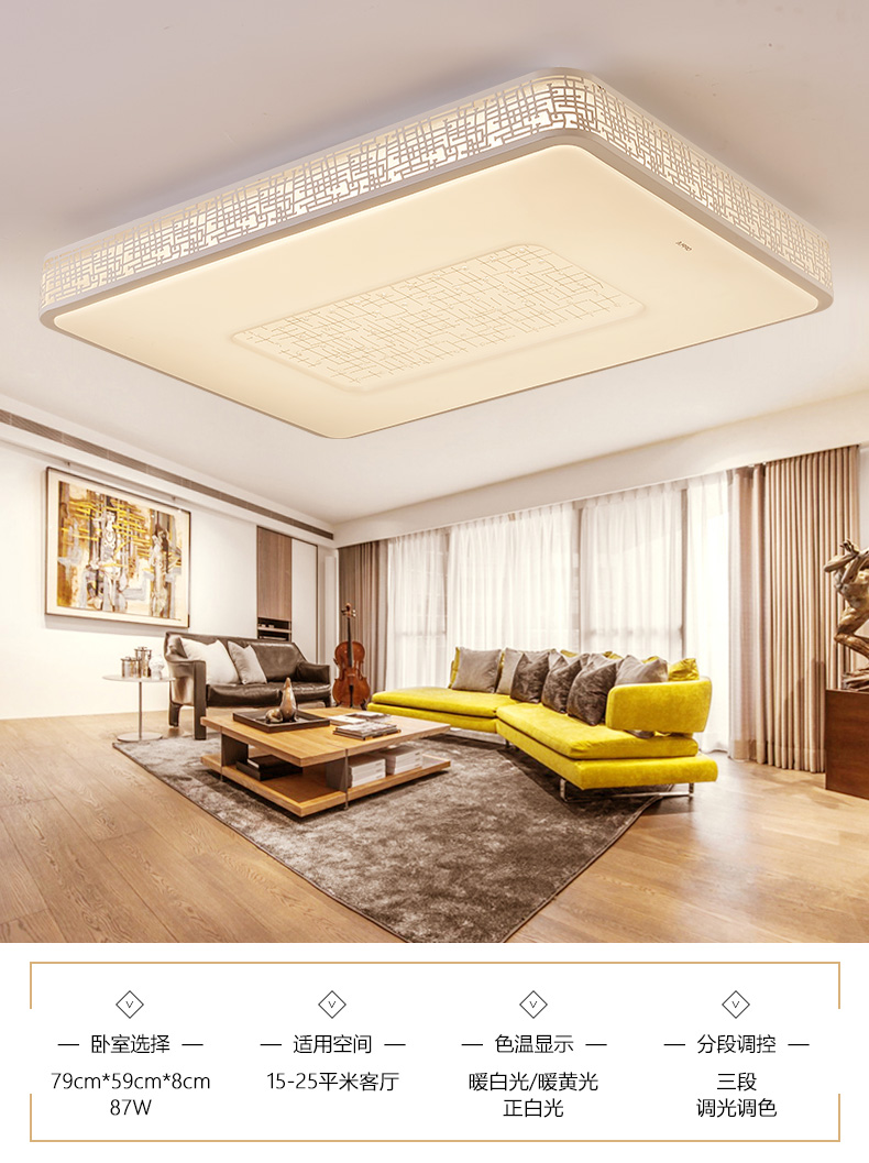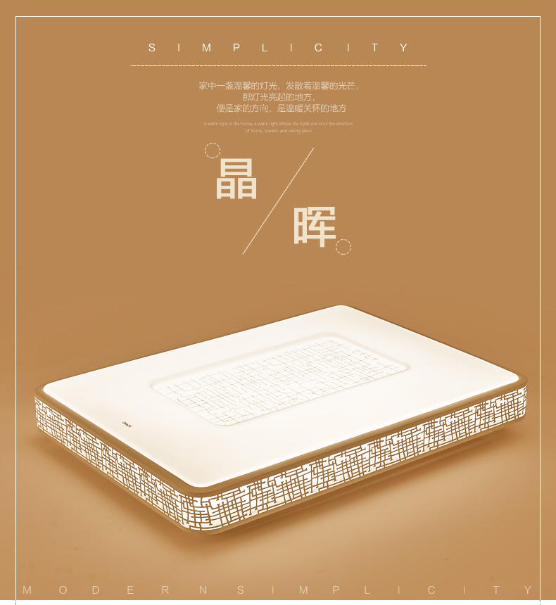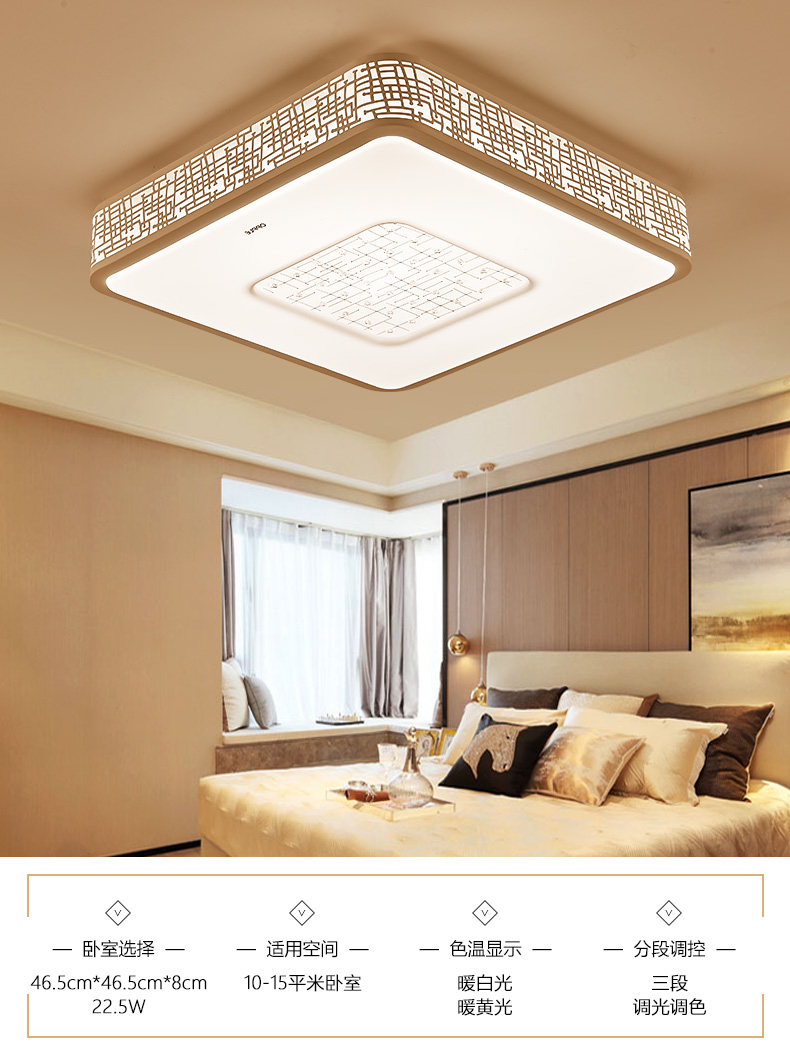 欧普照明LED吸顶灯卧室灯温馨方形客厅灯长方形简约现代 晶晖