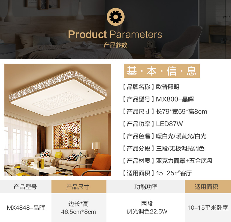 商品名称:欧普照明LED吸顶灯卧室灯温馨方形客厅灯长方形简约现代 晶晖