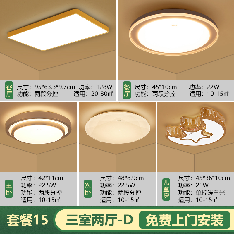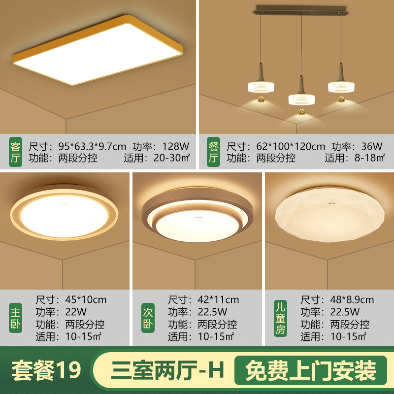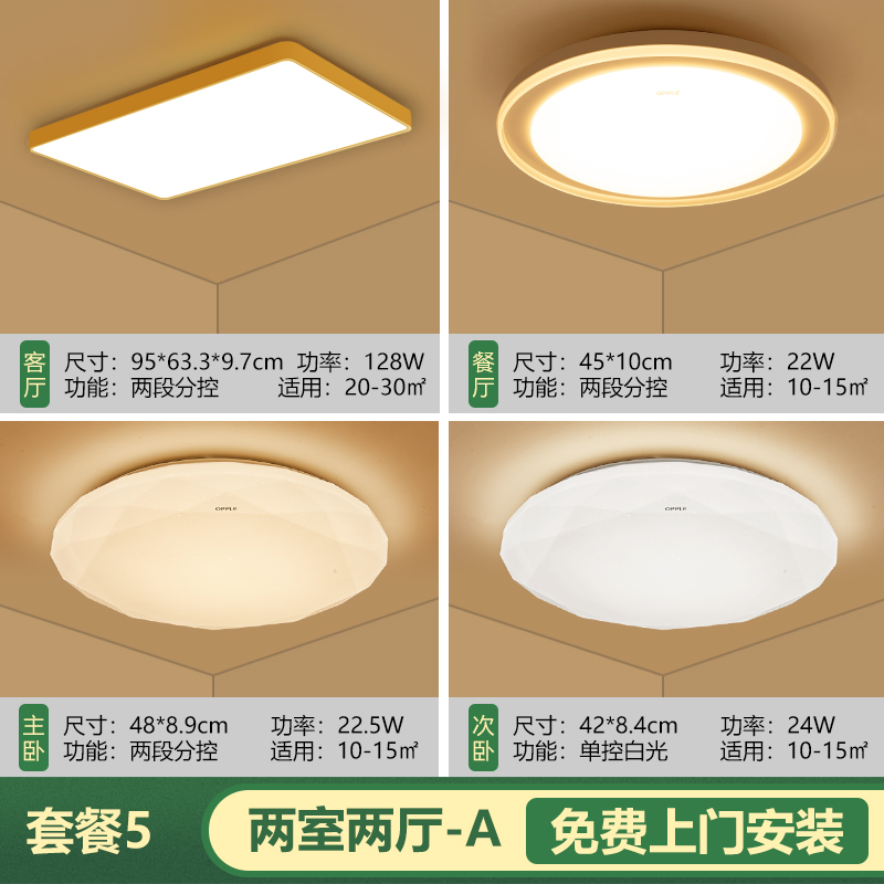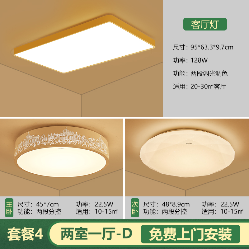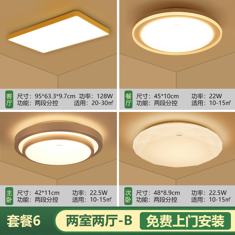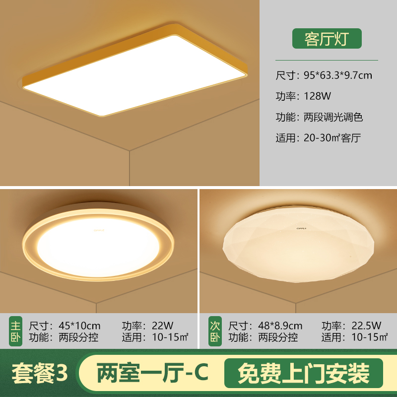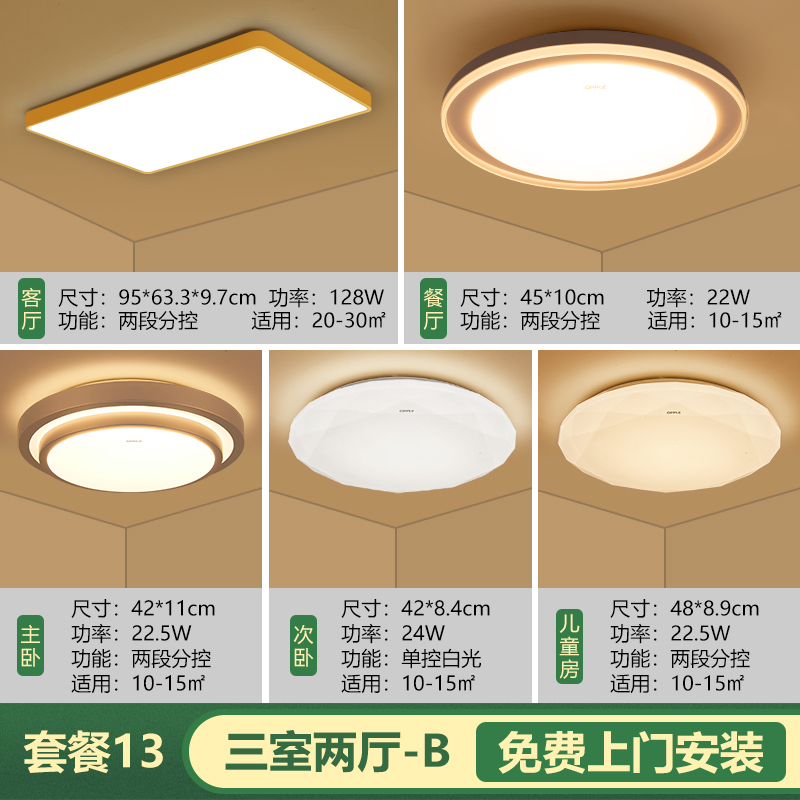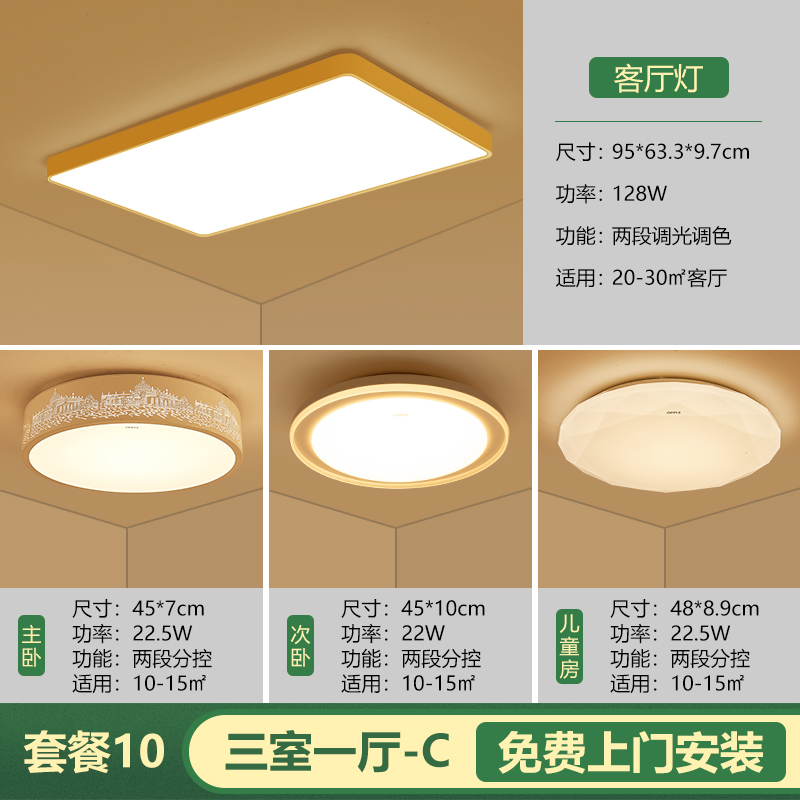 欧普照明led客厅灯吸顶灯卧室灯三室两厅灯具套餐组合套装一简尚