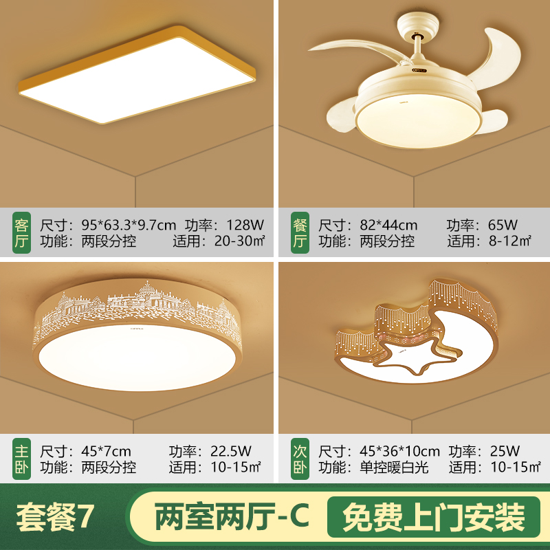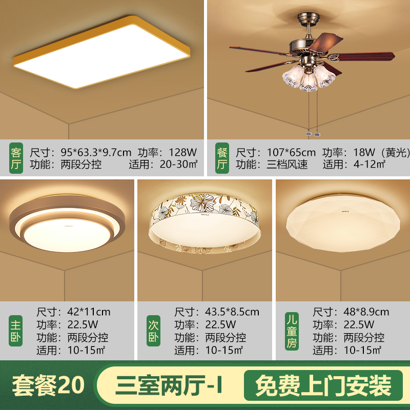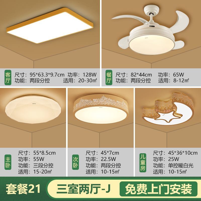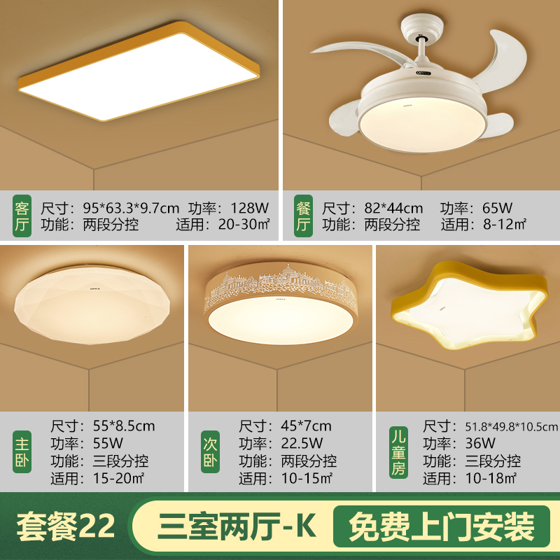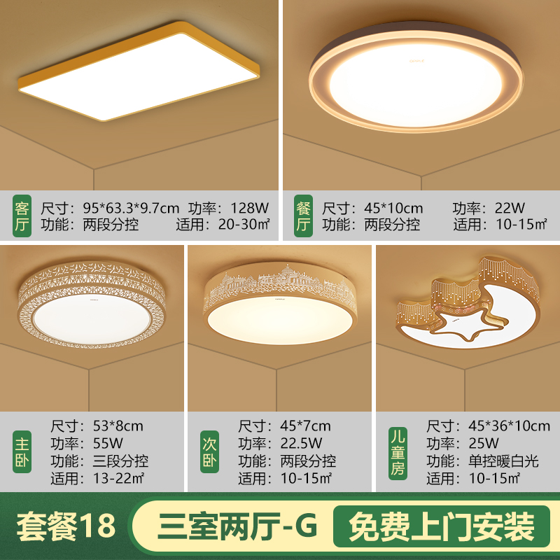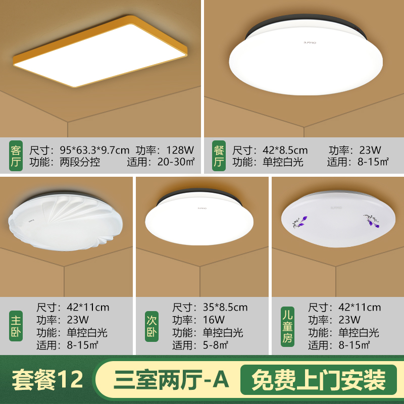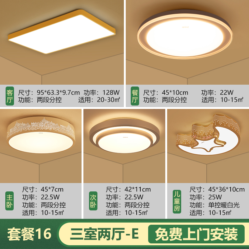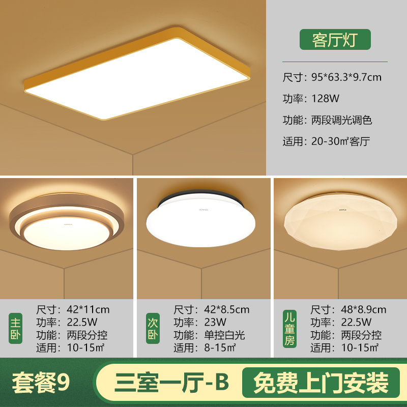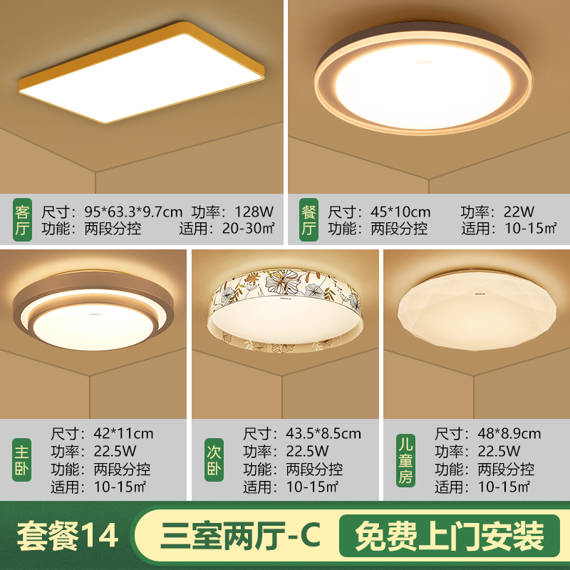 欧普照明led客厅灯吸顶灯卧室灯三室两厅灯具套餐组合套装一简尚