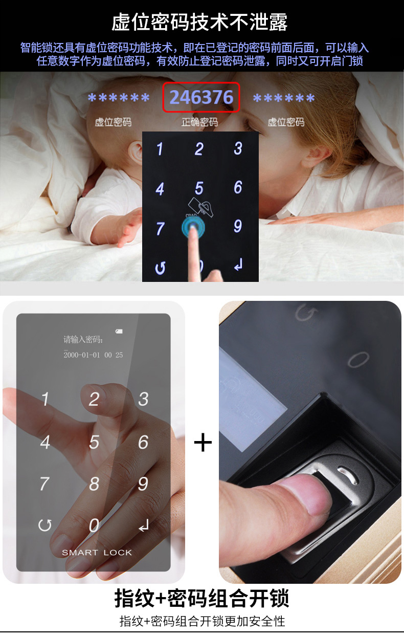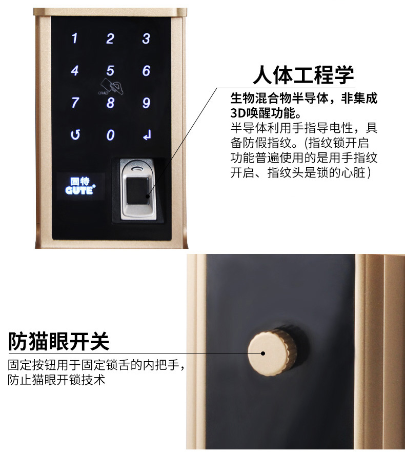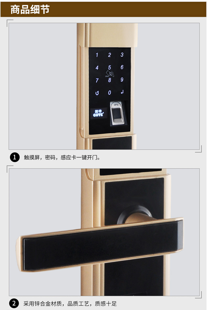 商品名称:固特指纹锁 密码锁智能刷卡锁家用防盗门锁电子锁门锁真人语音