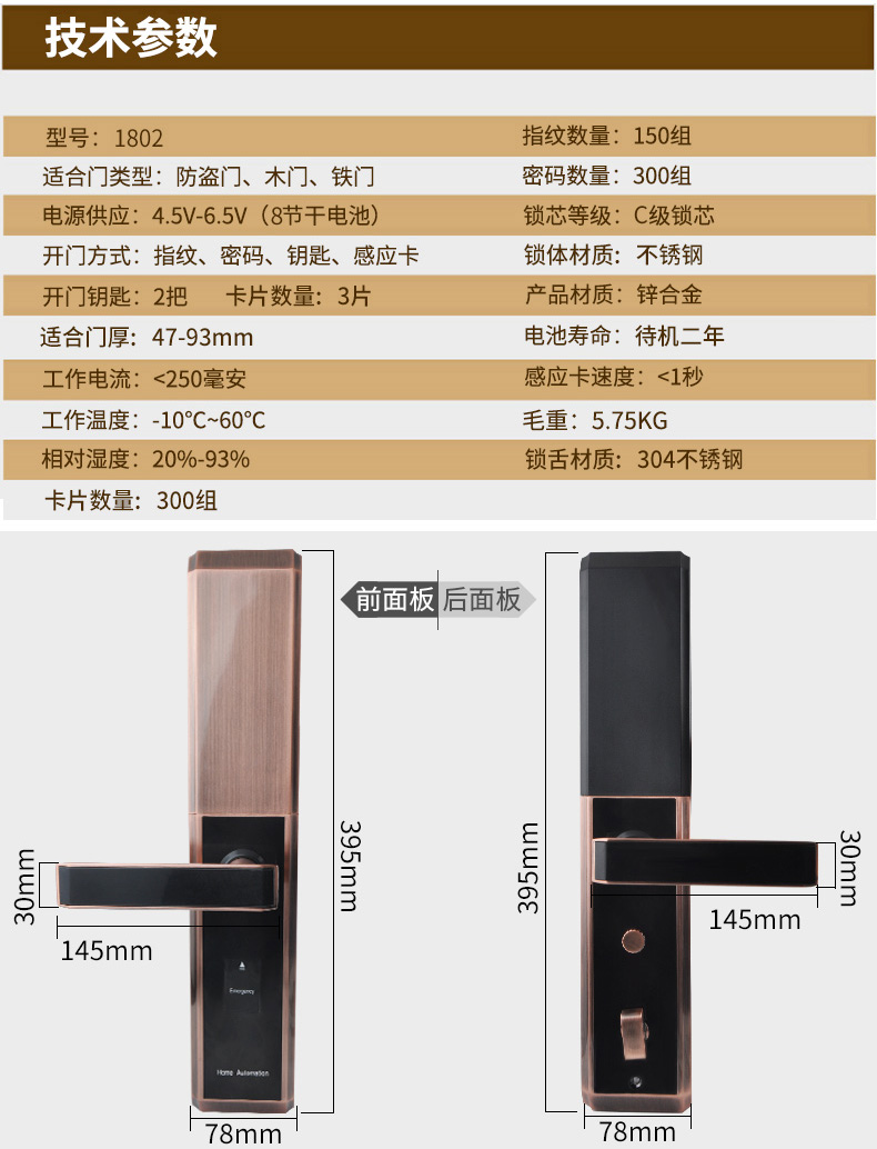 面板及执手材质:锌合金
