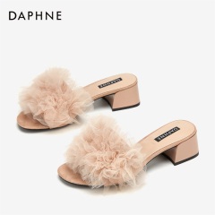 达芙妮夏新款拖鞋女外穿网纱凉拖休闲一字拖鞋时髦时尚学生拖