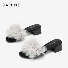 商品名称:达芙妮夏新款拖鞋女外穿网纱凉拖休闲一字拖鞋时髦时尚学生拖