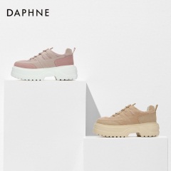 Daphne/达芙妮圆头厚底系带立体拼接工装风松糕底休闲鞋
