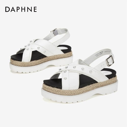 达芙妮2020年露趾圆头一字式扣带厚底凉鞋中空后空PU女凉鞋