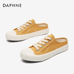 商品名称:达芙妮2020年夏网红帆布后空饼干鞋一脚蹬包头半拖凉鞋