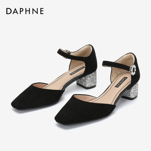 【李湘直播推荐】达芙妮2020春夏新款女鞋一字扣复古粗跟包头凉鞋