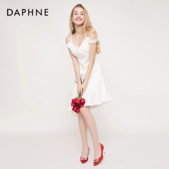 商品名称:Daphne/达芙妮春新款性感女神绒面钻扣细跟尖头婚鞋单鞋女