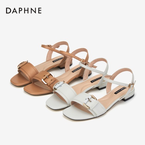 达芙妮2020年夏季新款女鞋精美方扣2cm低跟简约方头一字带凉鞋ins