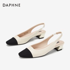 达芙妮2020春夏新款女鞋撞色拼接单鞋简约小香风后空包头低跟凉鞋