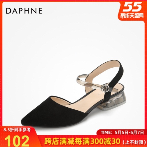 商品名称:达芙妮春秋单鞋女格纹平底鞋清新粗跟鞋个性透明跟浅口尖头鞋