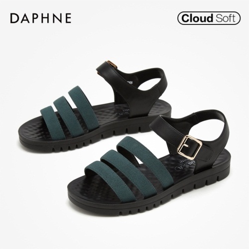 商品名称:达芙妮夏凉鞋女经典多条带平底凉鞋舒适一字带云软通勤鞋