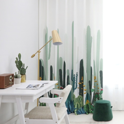 北欧ins风格多肉仙人掌小清新森系客厅卧室餐厅半遮光窗帘定制
