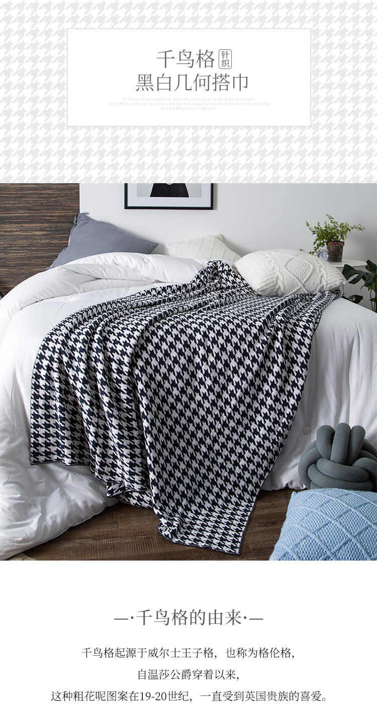 商品名称:黑白千鸟格沙发搭毯搭巾盖毯现代简约北欧样板房黑白针织床尾巾