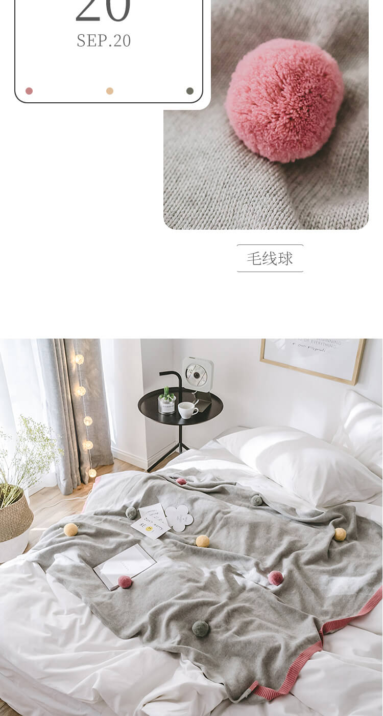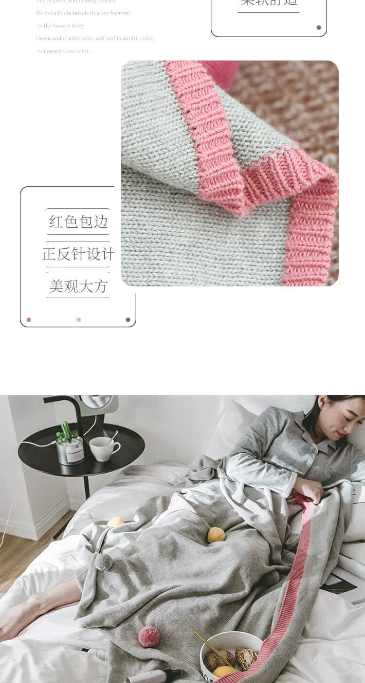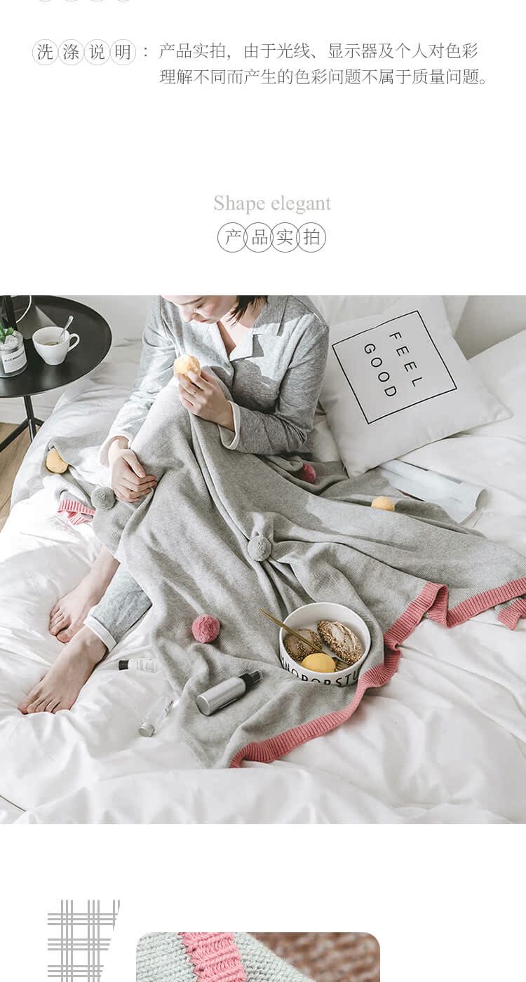 公主风针织毛线毯 彩色球球盖毯空调盖毯北欧风格毛线毯装饰毯