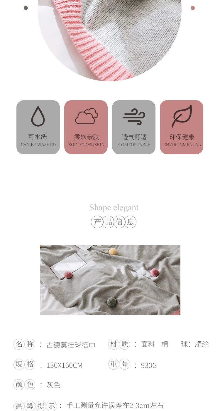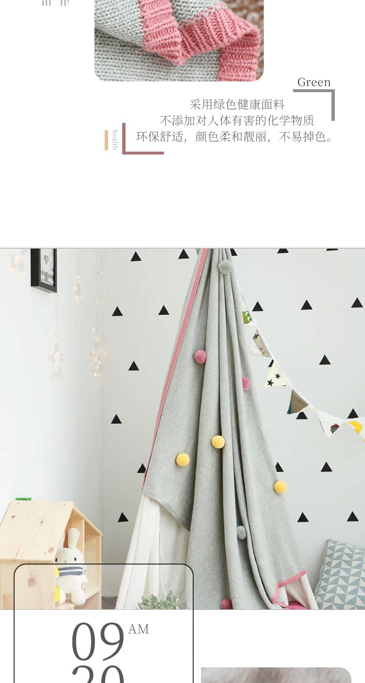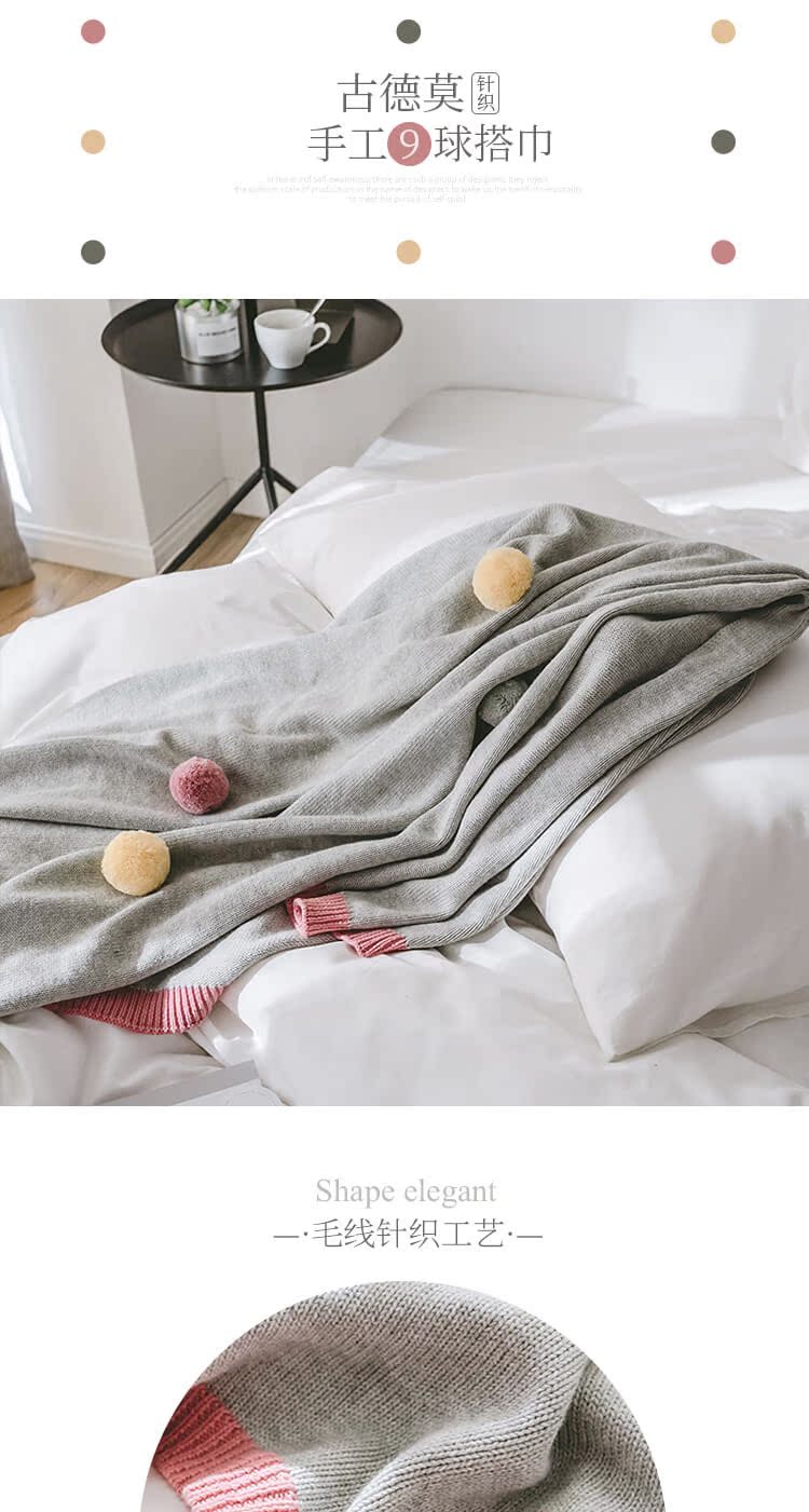 商品名称:公主风针织毛线毯 彩色球球盖毯空调盖毯北欧风格毛线毯装饰毯