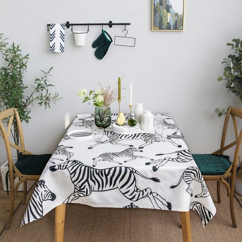 米+软装 简约北欧桌布棉麻长方形餐桌布艺台布盖布茶几布黑白斑马