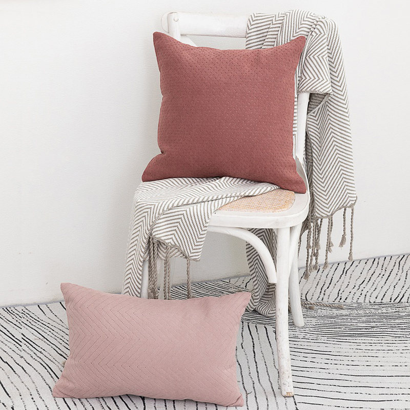 ins北欧网红脏粉色棉绒立体绗缝抱枕纯色沙发靠垫靠枕床头大靠包