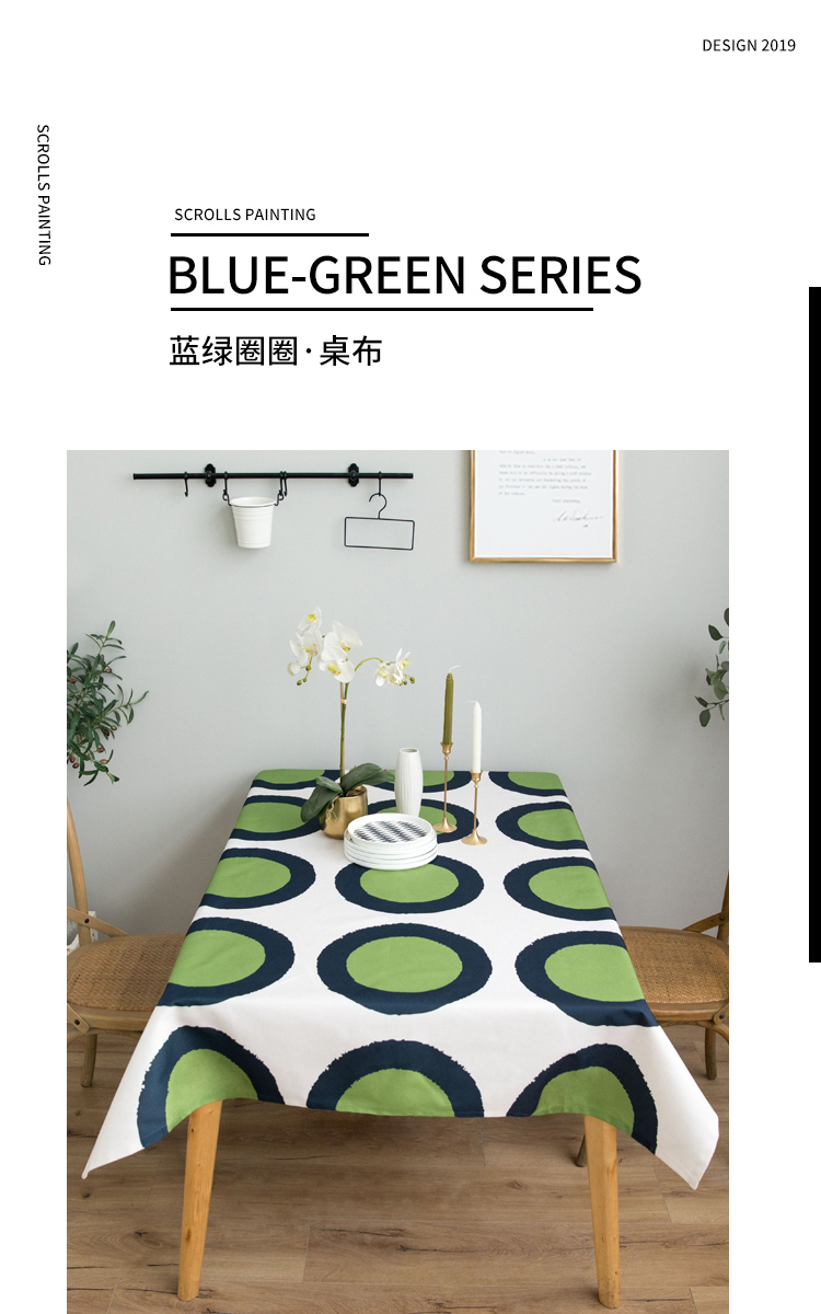 现代简约北欧风格抽象圆圈防水桌布布艺蓝色绿色茶几垫书桌桌布