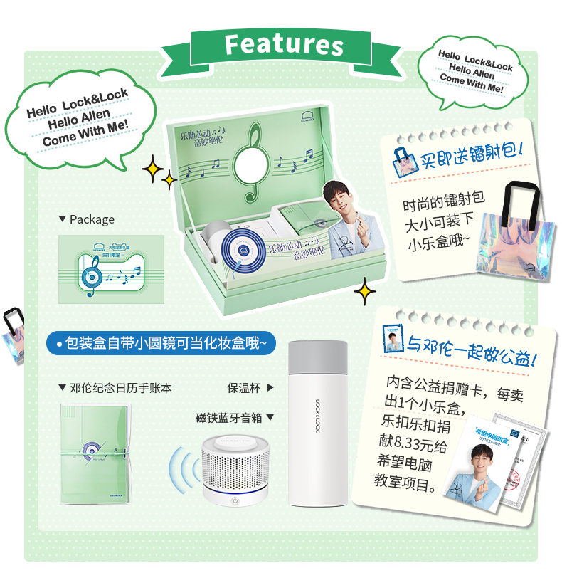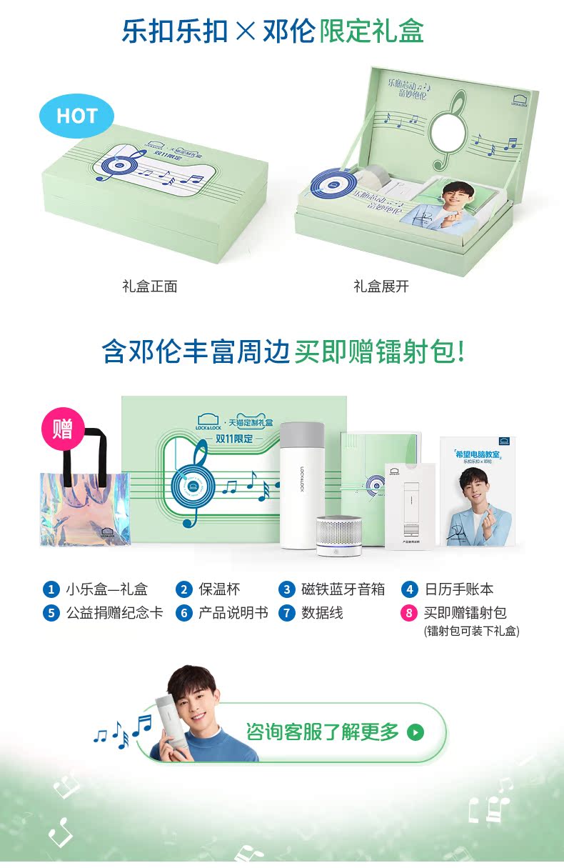 商品名称:乐扣乐扣小乐盒邓伦限定礼盒蓝牙音乐保温杯手账本真人语音
