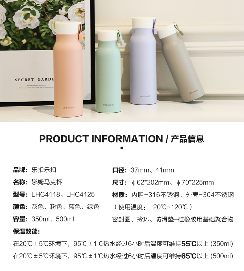 商品名称:乐扣乐扣新娜姆保温杯马卡龙保冷水杯可爱情侣学生男女士LHC4125