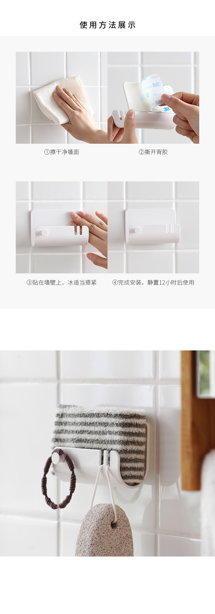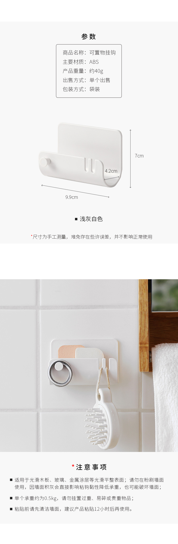 商品名称:懒角落 可置物挂钩 门后厨房浴室瓷砖粘胶墙壁免钉黏贴 66033