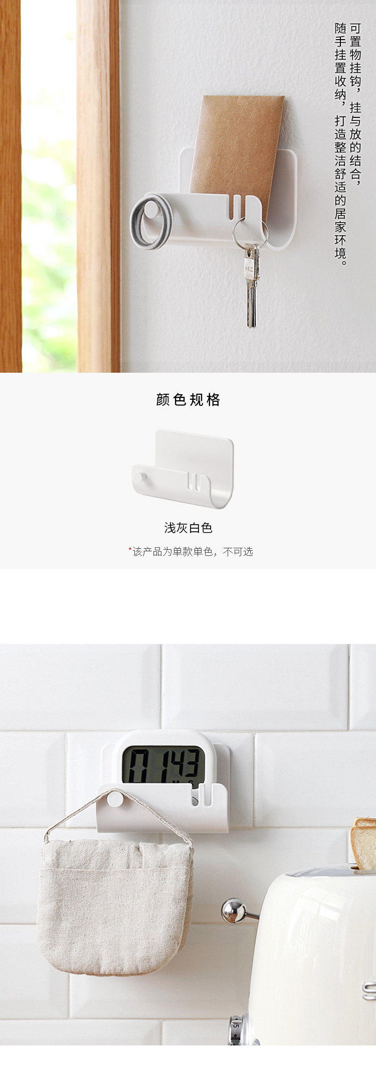 懒角落 可置物挂钩 门后厨房浴室瓷砖粘胶墙壁免钉黏贴 66033