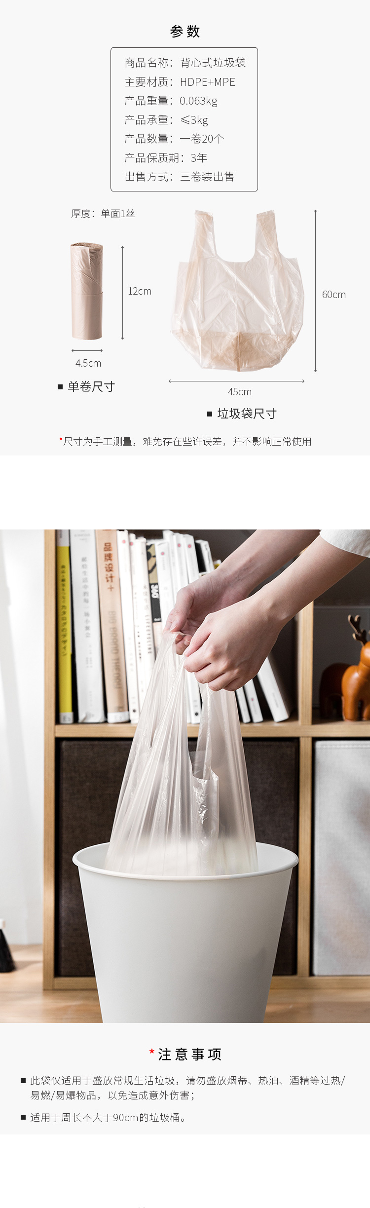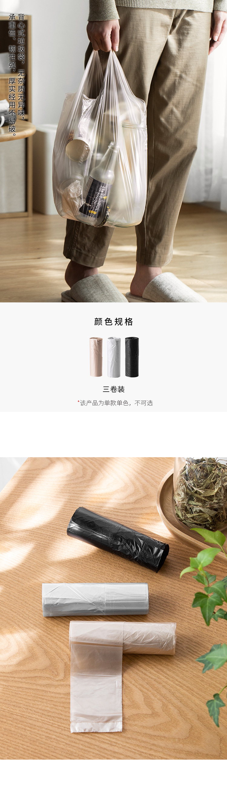 商品名称:懒角落背心垃圾袋家用中号手提式加厚塑料收纳袋点断式3个装66910