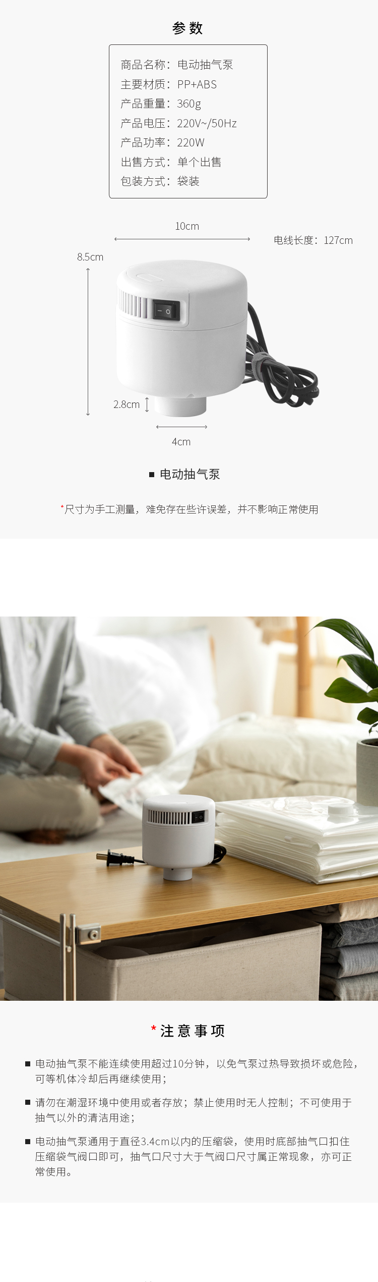 商品名称:懒角落 真空压缩袋电泵收纳袋真空袋电动抽气电泵吸气泵65983A