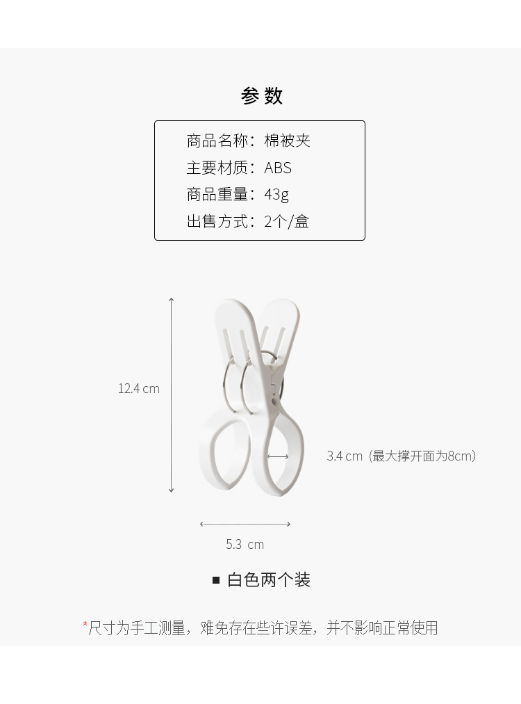 商品名称:懒角落 棉被夹防风夹子塑料被单床单晾晒夹晒被夹大号2个装66092