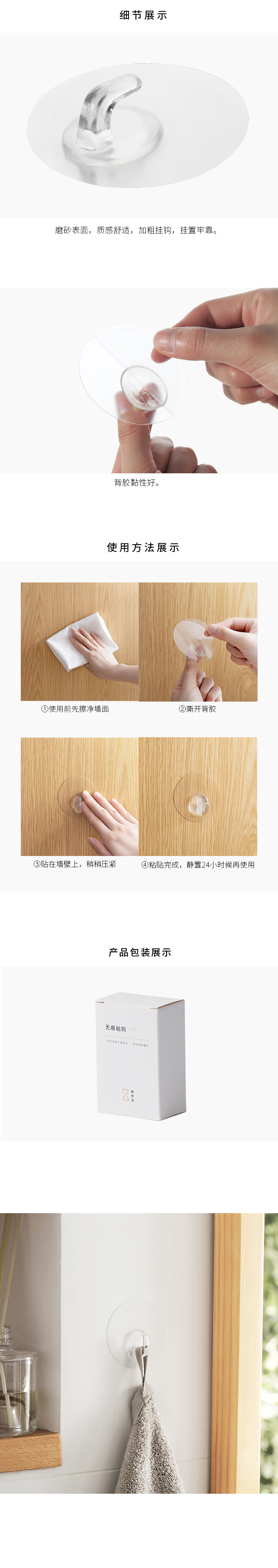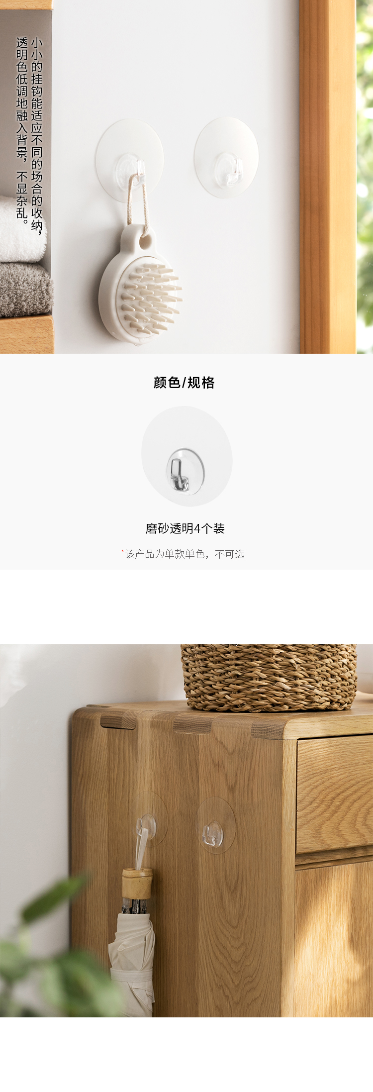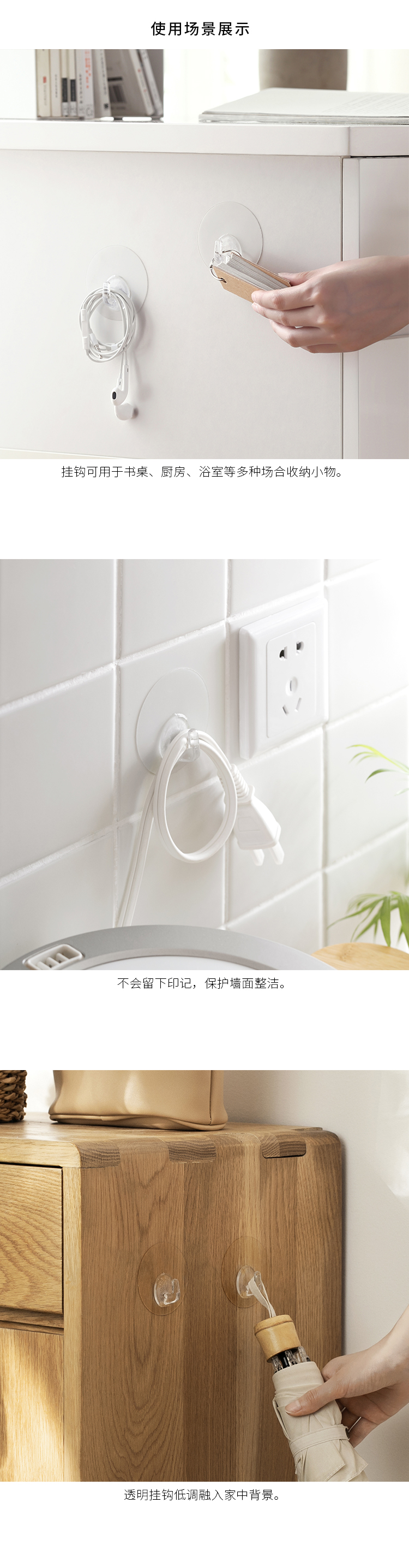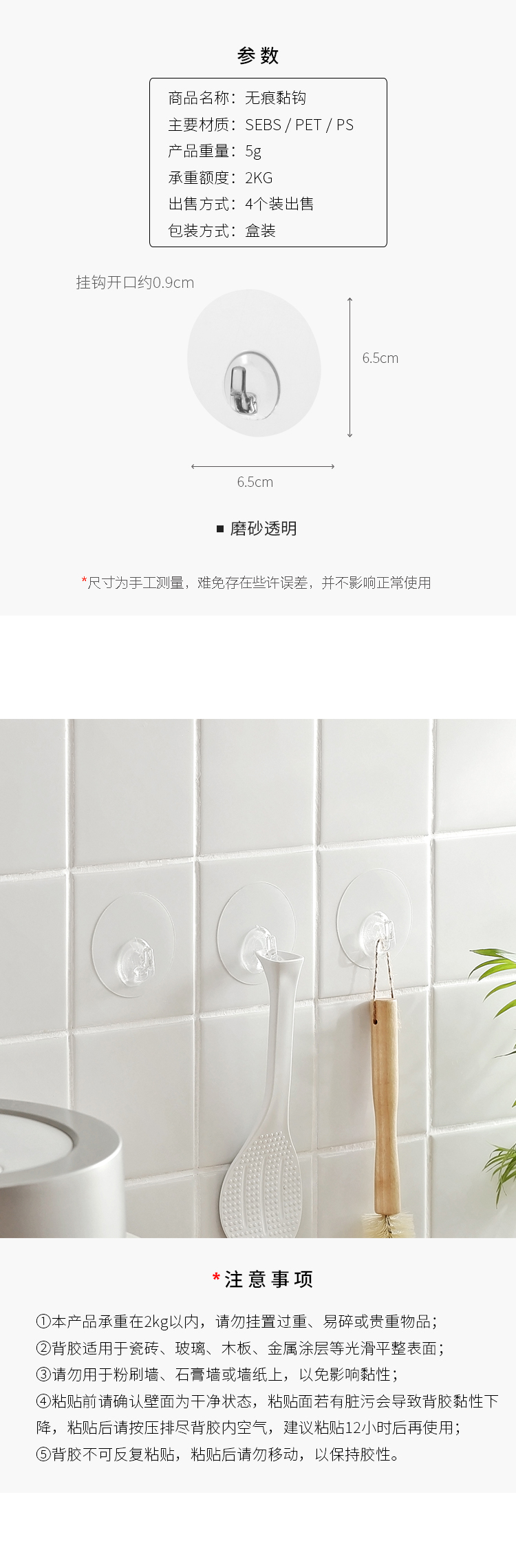 商品名称:懒角落 粘钩厨房卫生间门后免钉墙壁透明小挂钩4个装62170