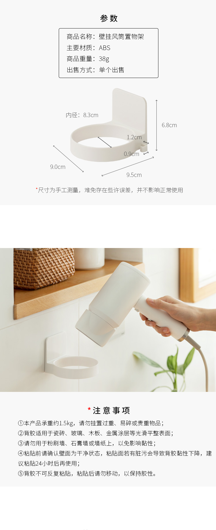 商品名称:懒角落 壁挂风筒收纳架子浴室卫生间电吹风置物架家用免打孔66202