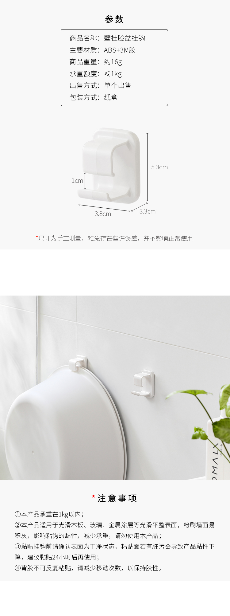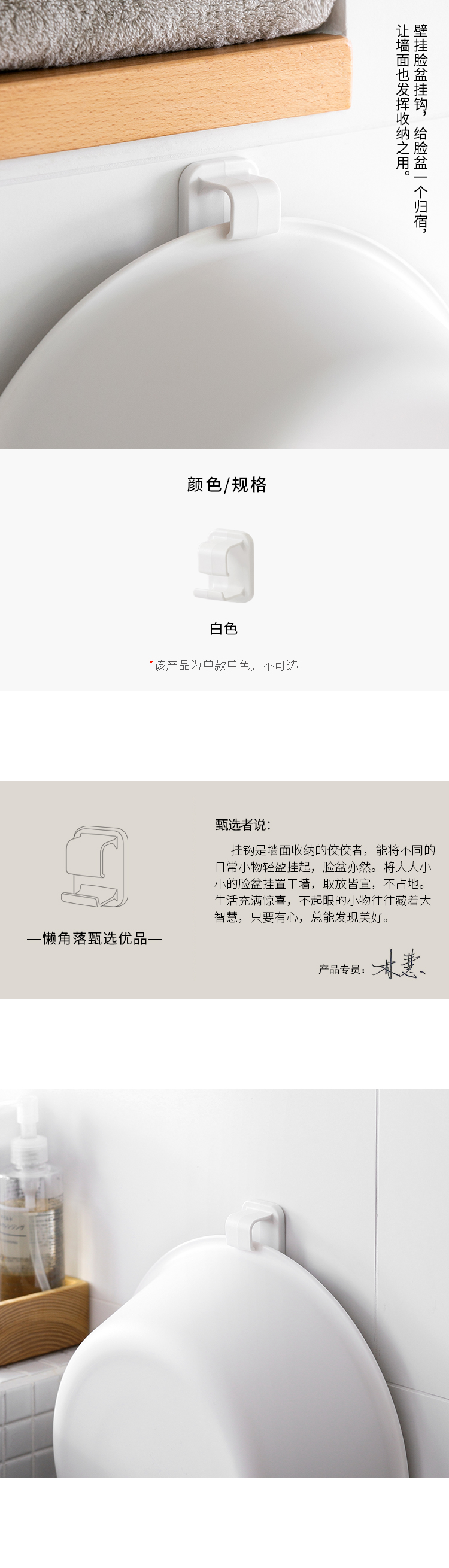 商品名称:懒角落 壁挂脸盆挂钩免打孔浴室粘钩家用脸盆架洗手盆收纳架66200
