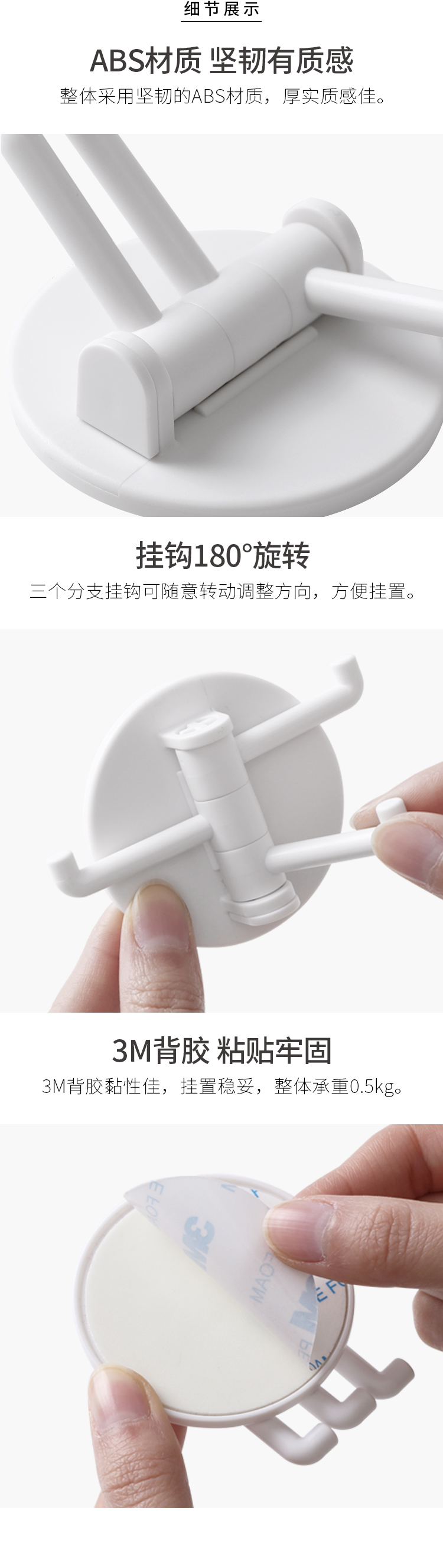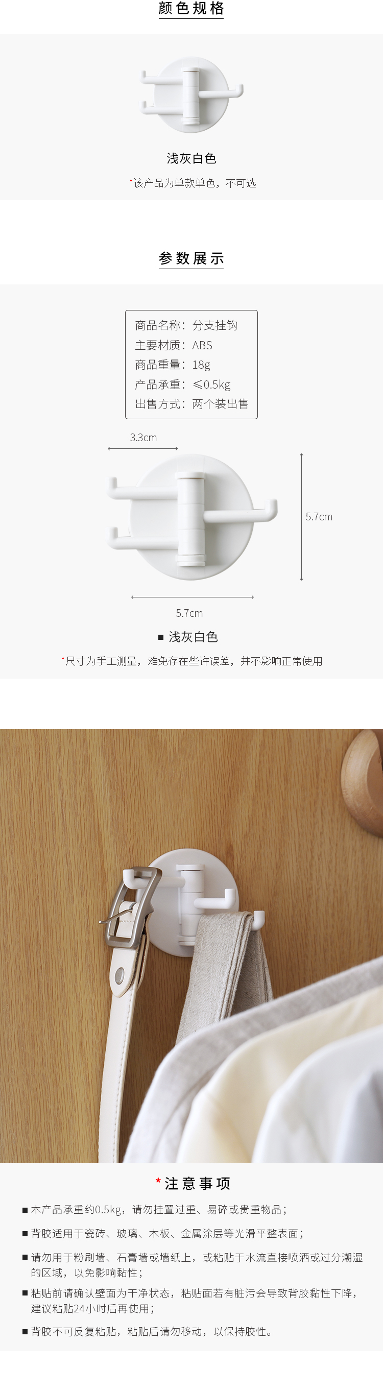 商品名称:懒角落分支挂钩2个装多功能家用门后厨房墙壁免钉强力粘贴钩66032