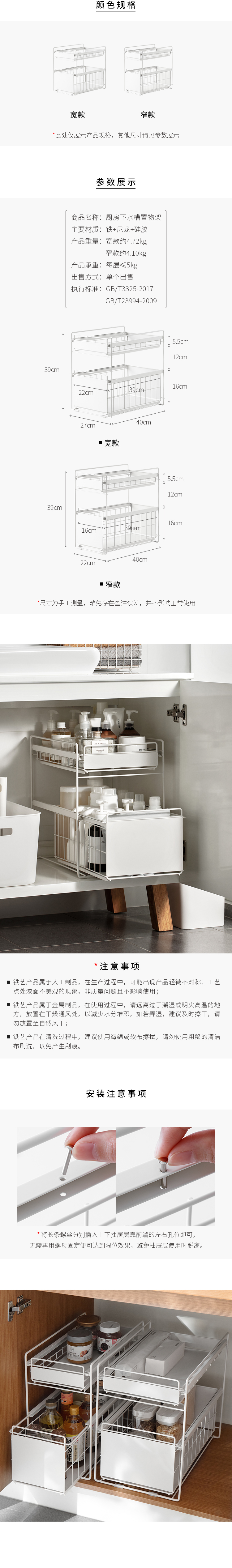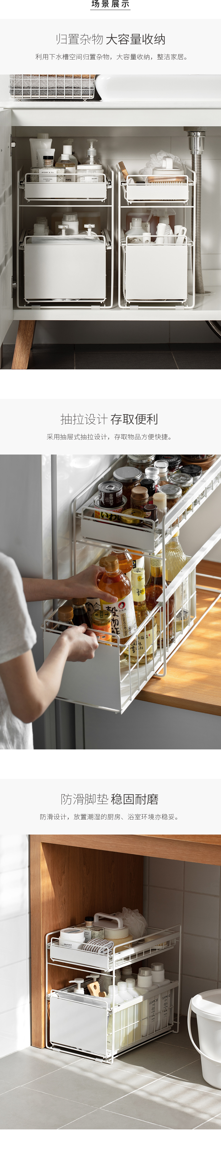 商品名称:懒角落 厨房下水槽置物架储物架落地式铁艺分隔多层整理架子66153