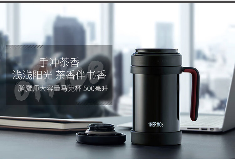 THERMOS膳魔师保温杯子办公室茶杯带茶漏杯子男女便携泡茶水杯500ml TCMF-501 GL