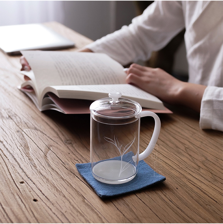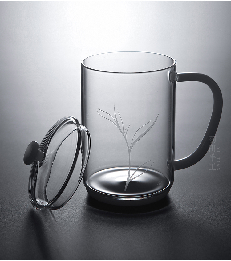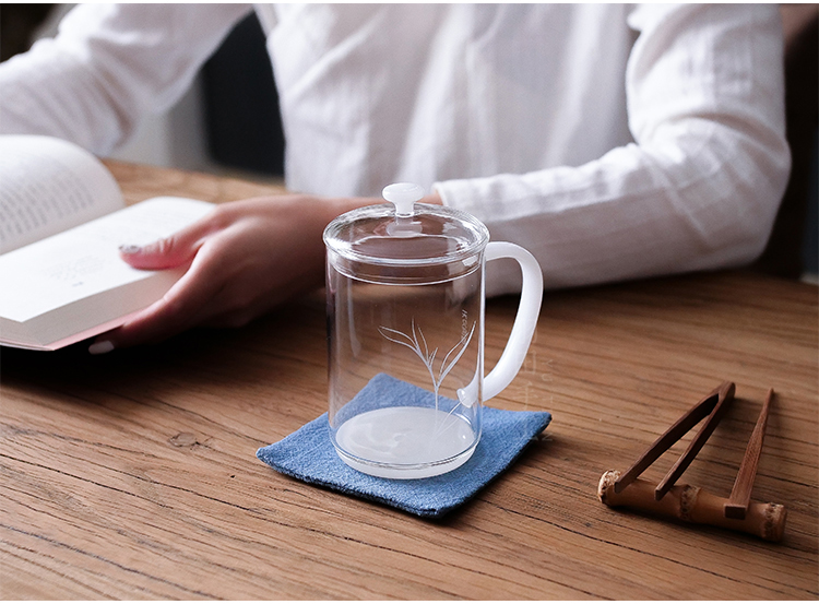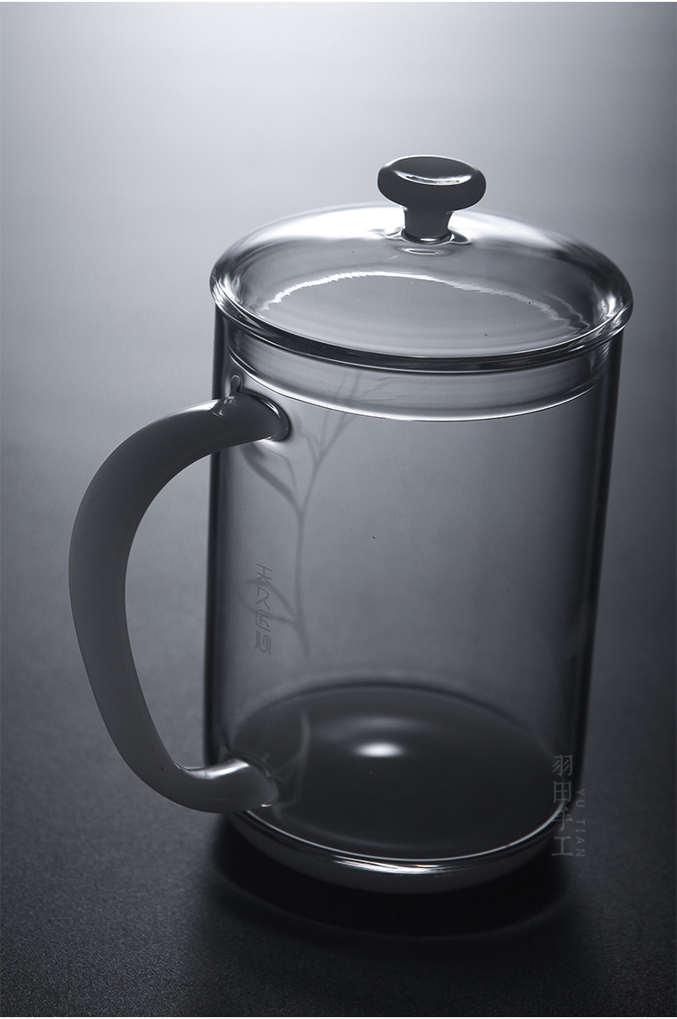 高端玉底带盖水杯玻璃杯茶杯办公水杯花茶杯带把高档送礼泡茶杯子