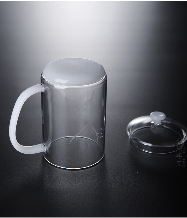 商品名称:高端玉底带盖水杯玻璃杯茶杯办公水杯花茶杯带把高档送礼泡茶杯子