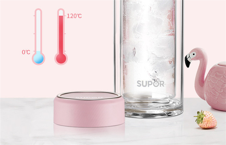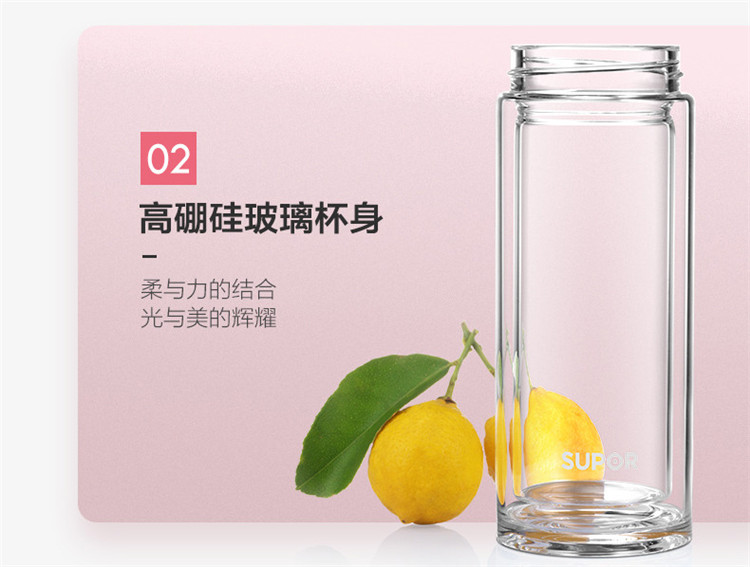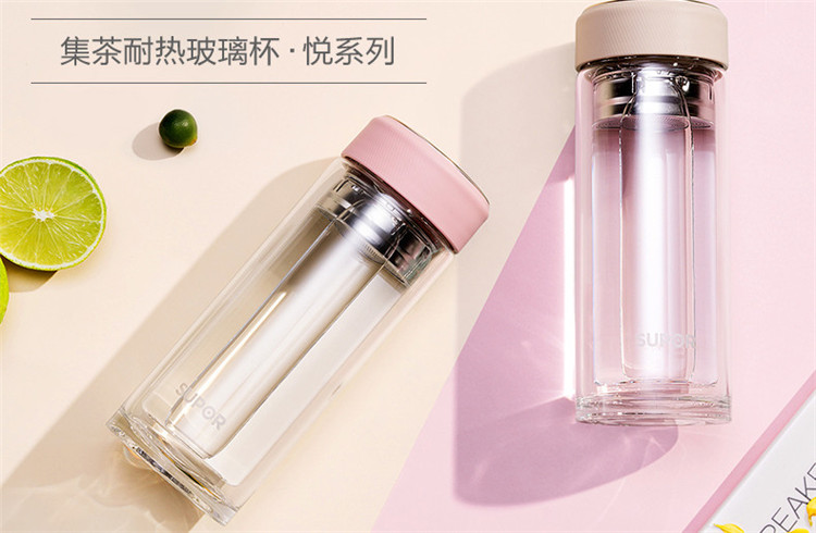 苏泊尔双层玻璃杯男女士便携水杯带盖茶漏过滤透明办公家用茶杯子