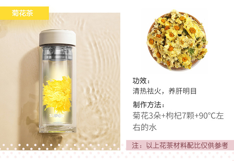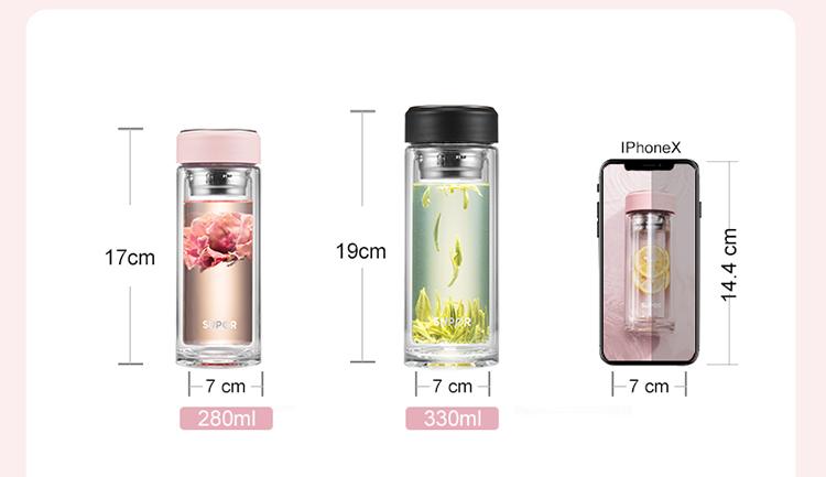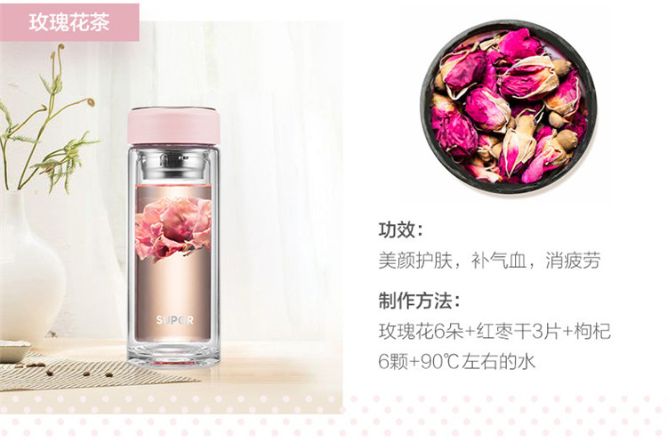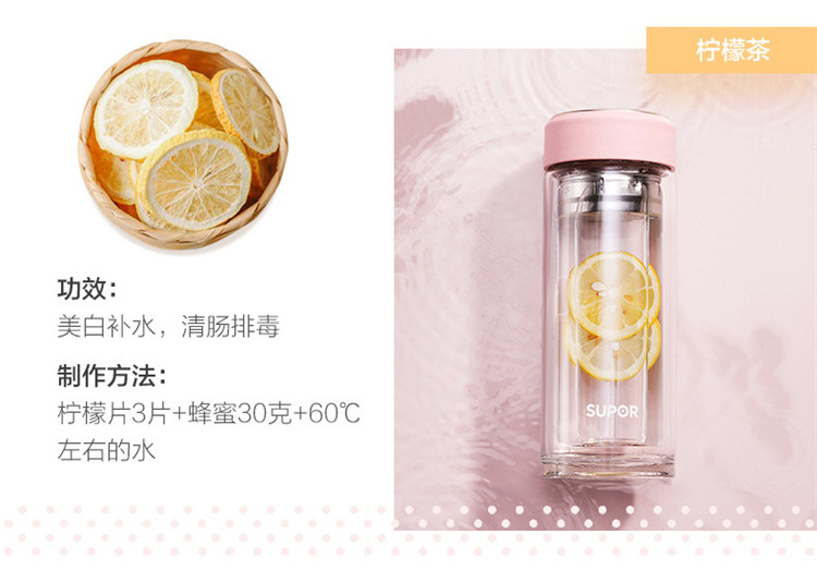 商品名称:苏泊尔双层玻璃杯男女士便携水杯带盖茶漏过滤透明办公家用茶杯子