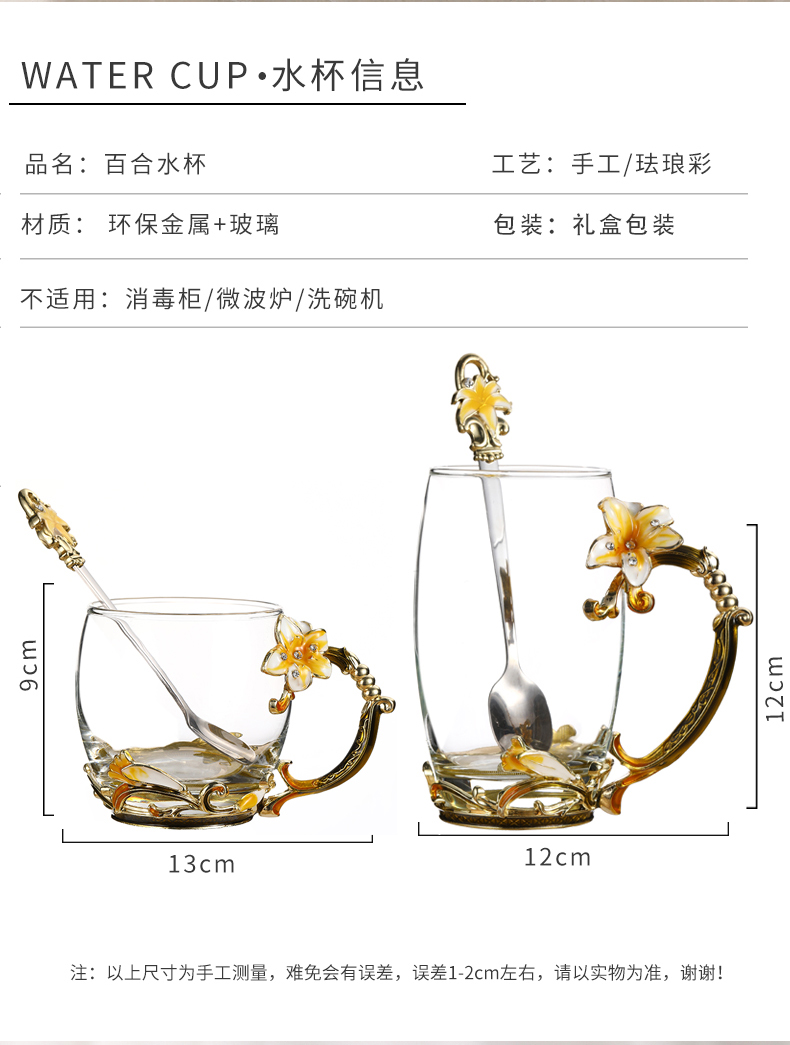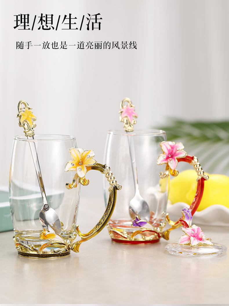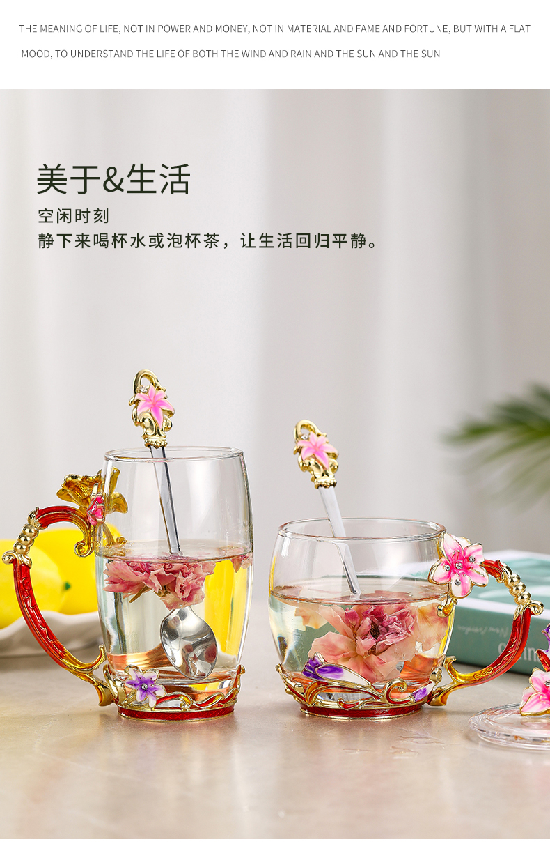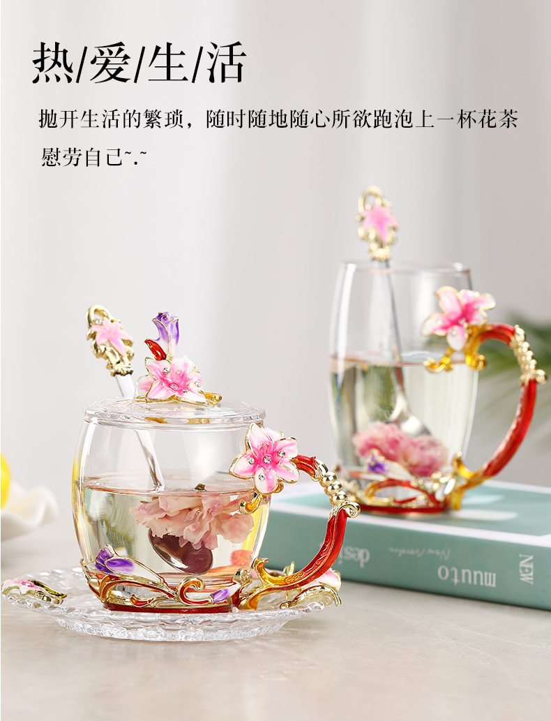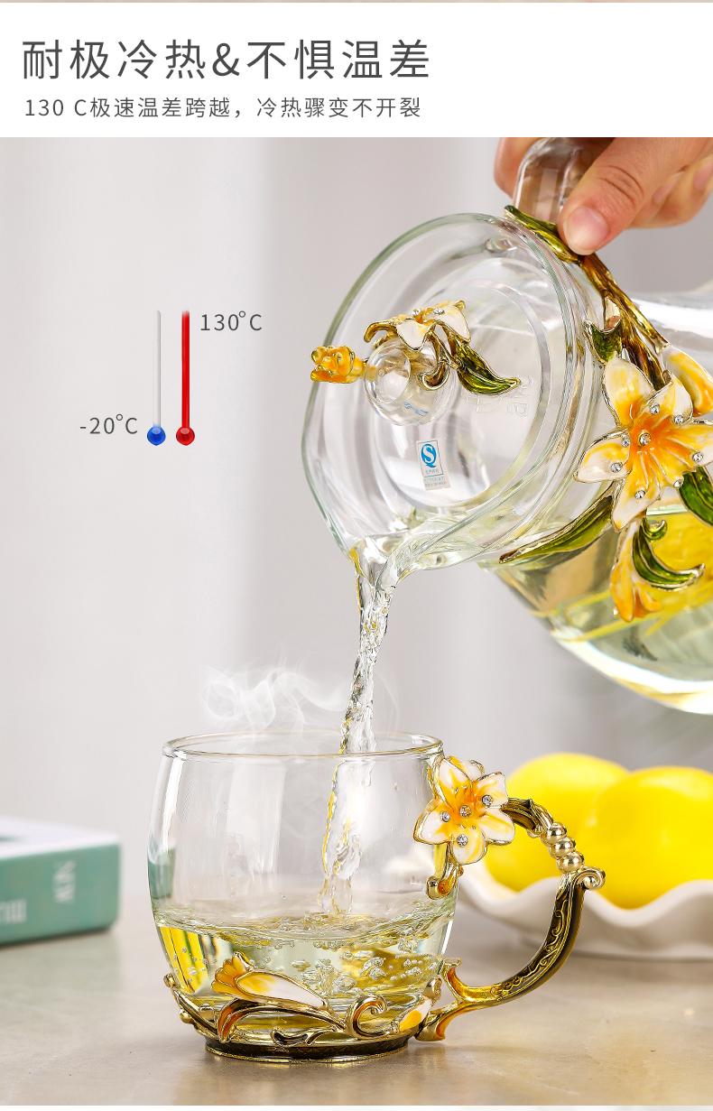 商品名称:欧式珐琅彩水杯水壶套装家用耐热玻璃杯花茶杯泡茶咖啡杯结婚礼物
