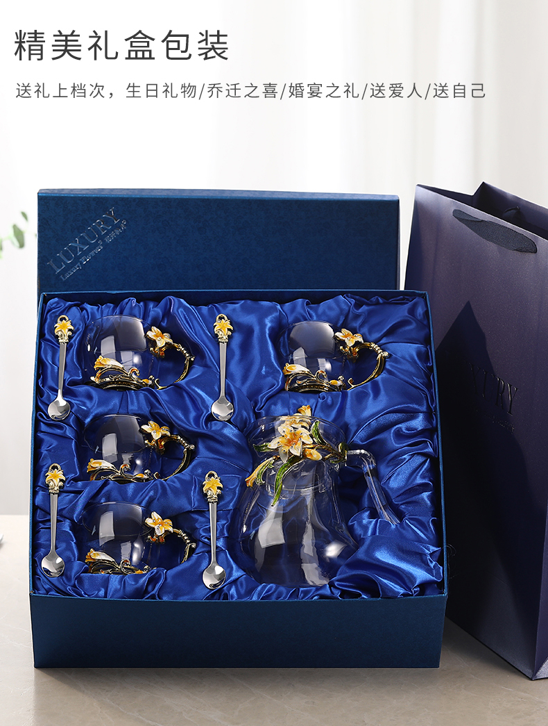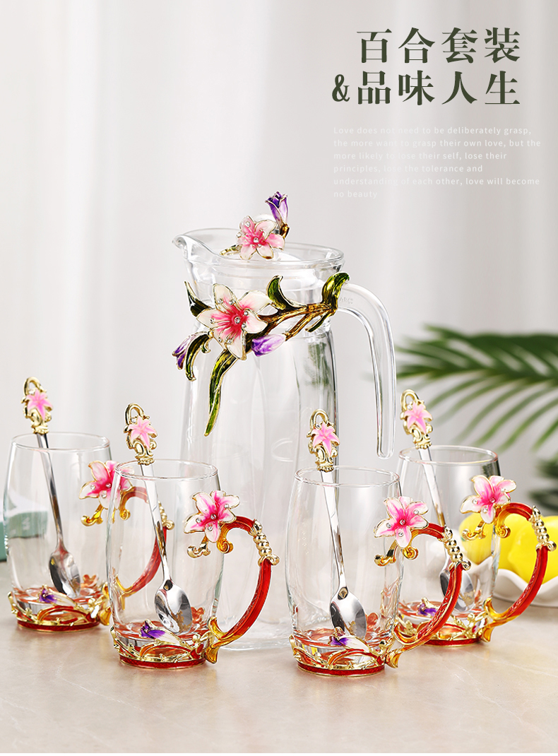 欧式珐琅彩水杯水壶套装家用耐热玻璃杯花茶杯泡茶咖啡杯结婚礼物