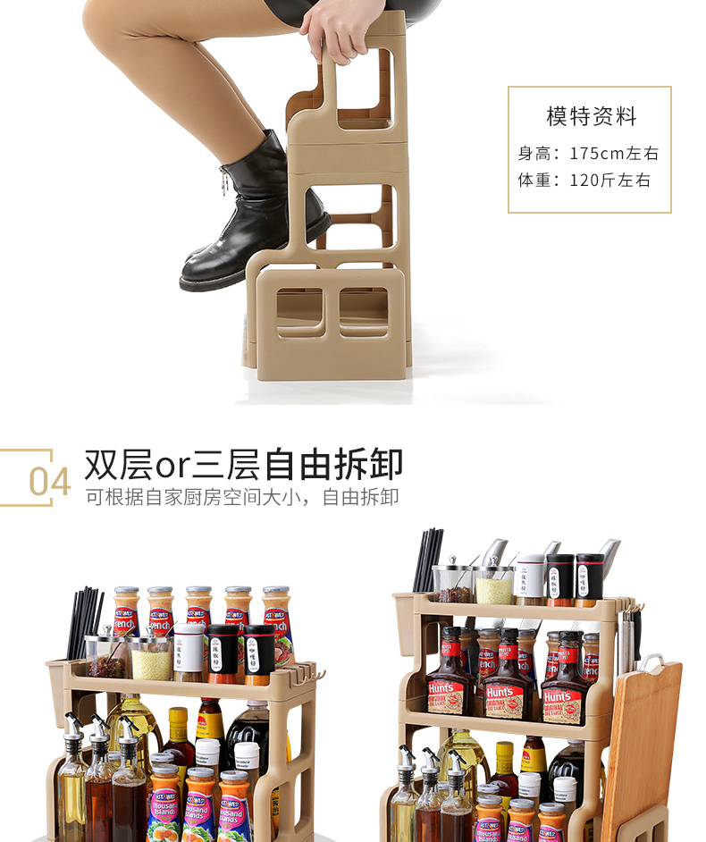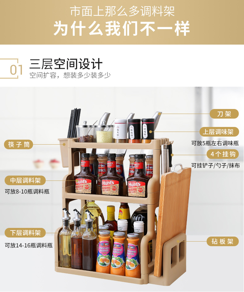 商品名称:落地多层调味料置物架厨房用品用具小百货橱柜厨具调料储物收纳架