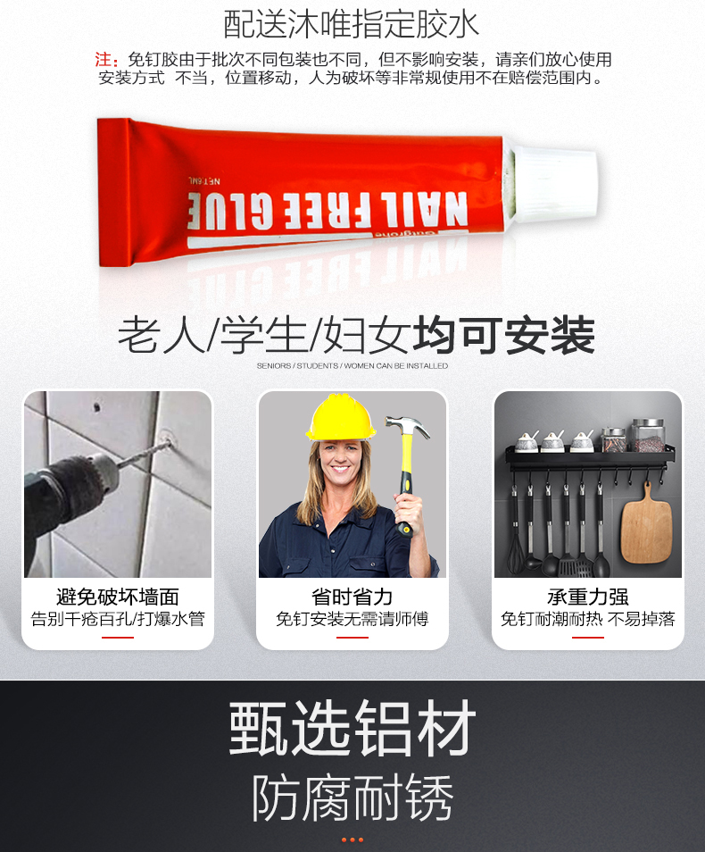 厨房置物架免打孔调料味品架子壁挂式收纳储物架厨具用品百货带钩