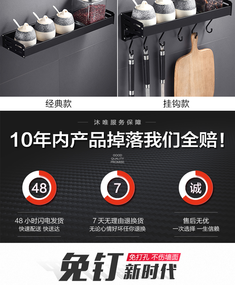 商品名称:厨房置物架免打孔调料味品架子壁挂式收纳储物架厨具用品百货带钩