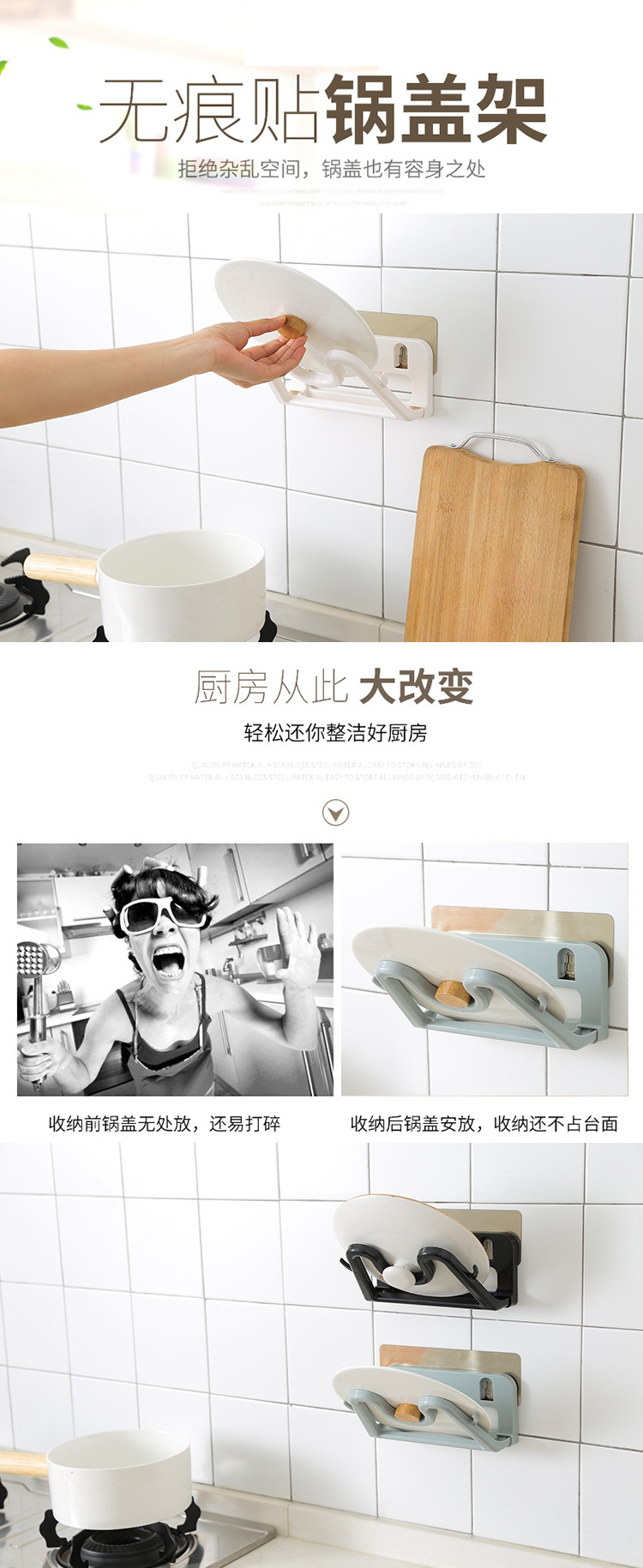 家用厨房用品用具小百货放的锅盖收纳架子菜板免打孔挂壁置物架